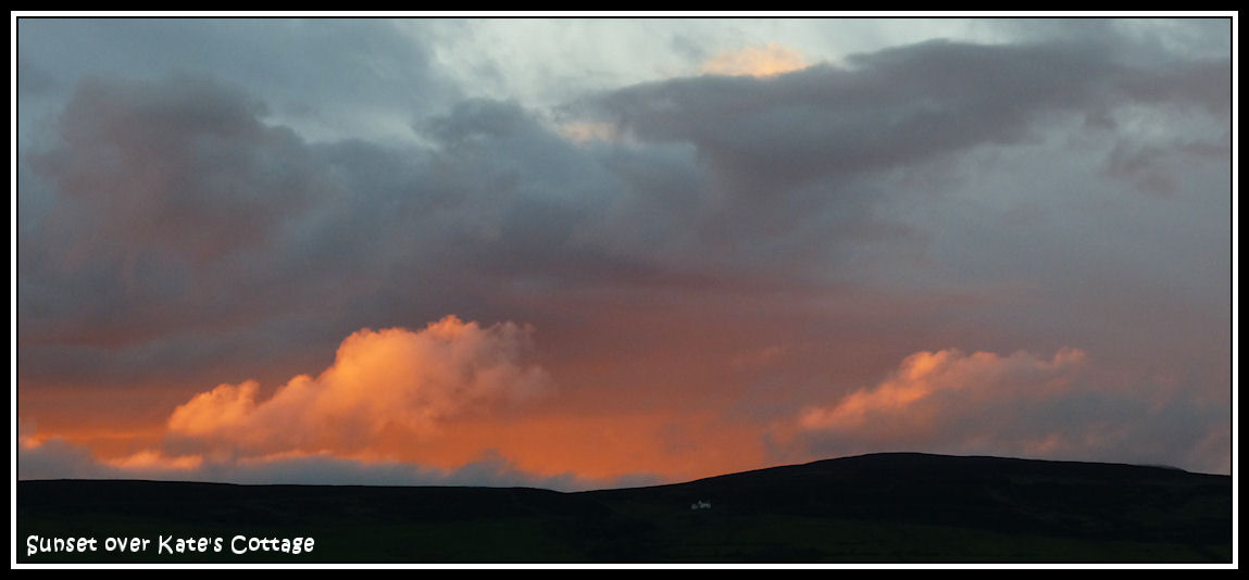Turning to the north to view the clouds over Kate's Cottage turned orange by the setting sun