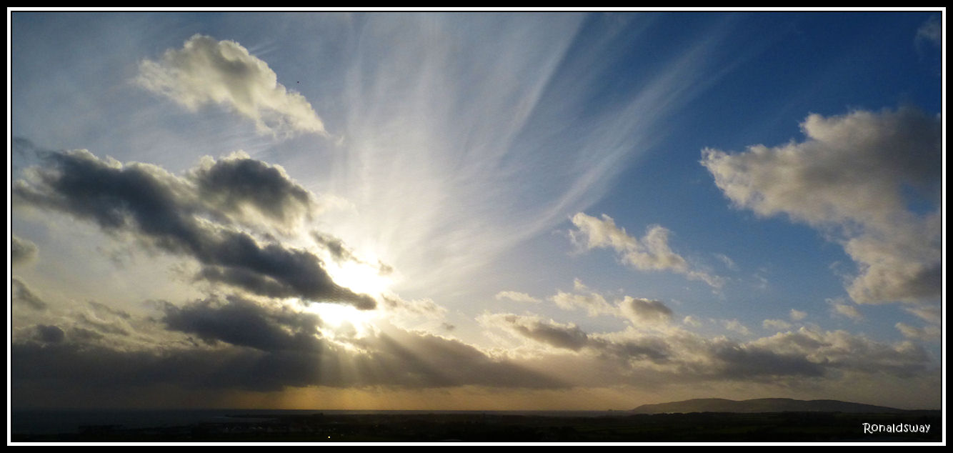 A low afternoon sun highlights some interesting cloud formations