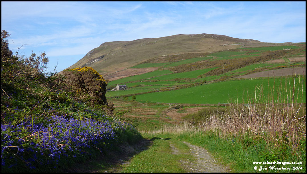 On 'The Rocky Road' to Bradda East with some nice patches of bluebells, looking back towards Fleshwick