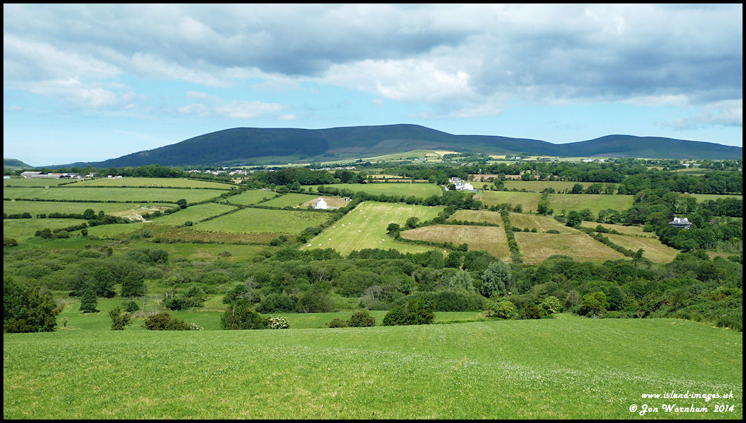 Heading down into Union Mills on Lhergy Cripperty, looking across the central vally to Greeba