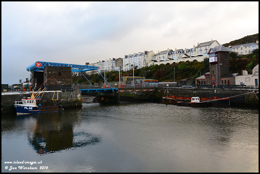 The lifting bridge with local fishing vessel 'Manx Ranger' mored alongside