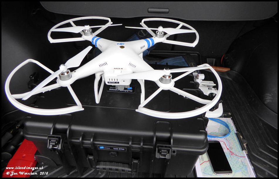 Fully assembled with propellors and prop guards (the latter are optional, but having ruined two ESC boards due to ground contact by the props without them, I now always fit them)