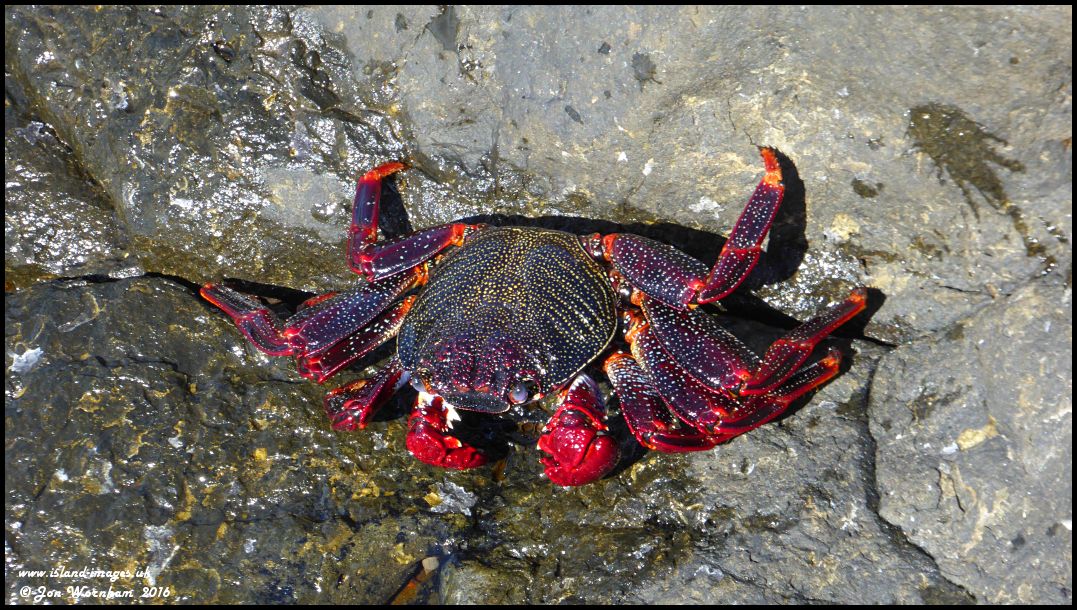 A colourful crab on the rocks at Playa Blanca