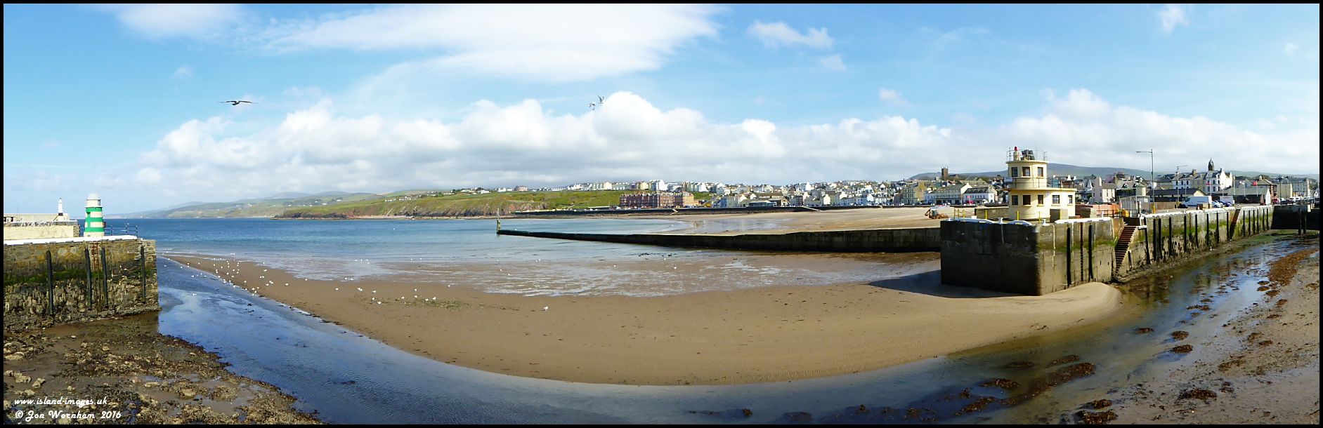 An in camera produced panorama of Peel harbour entrance at low tide