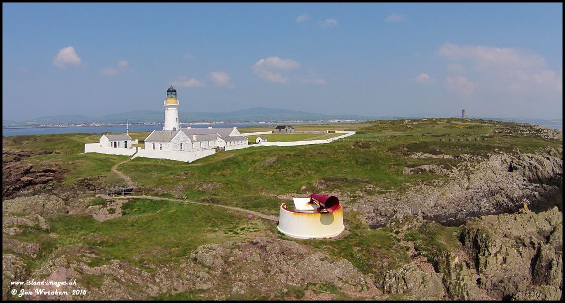 Langness Lighthouse and Foghorn. The foghorn has not been used since 1987 and the lighthouse was automated in 1996. The Herring Tower is in the background.