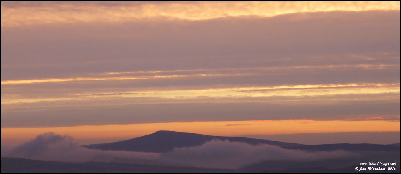 Sunset clouds and fog around South Barrule, viewed from Birch Hill, Onchan