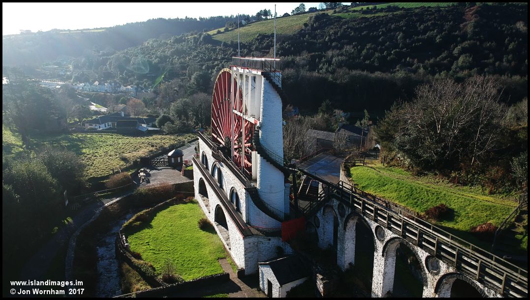 The Laxey wheel, with part of Laxey village visible beyond