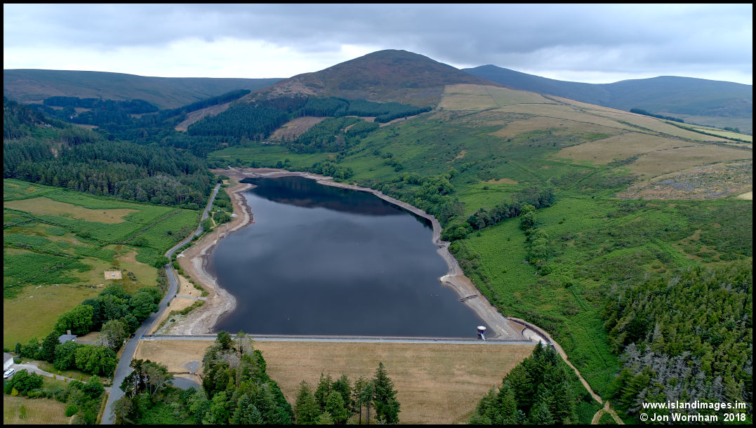 A rather depleted Injebreck Reservoir with Carraghan beyond.