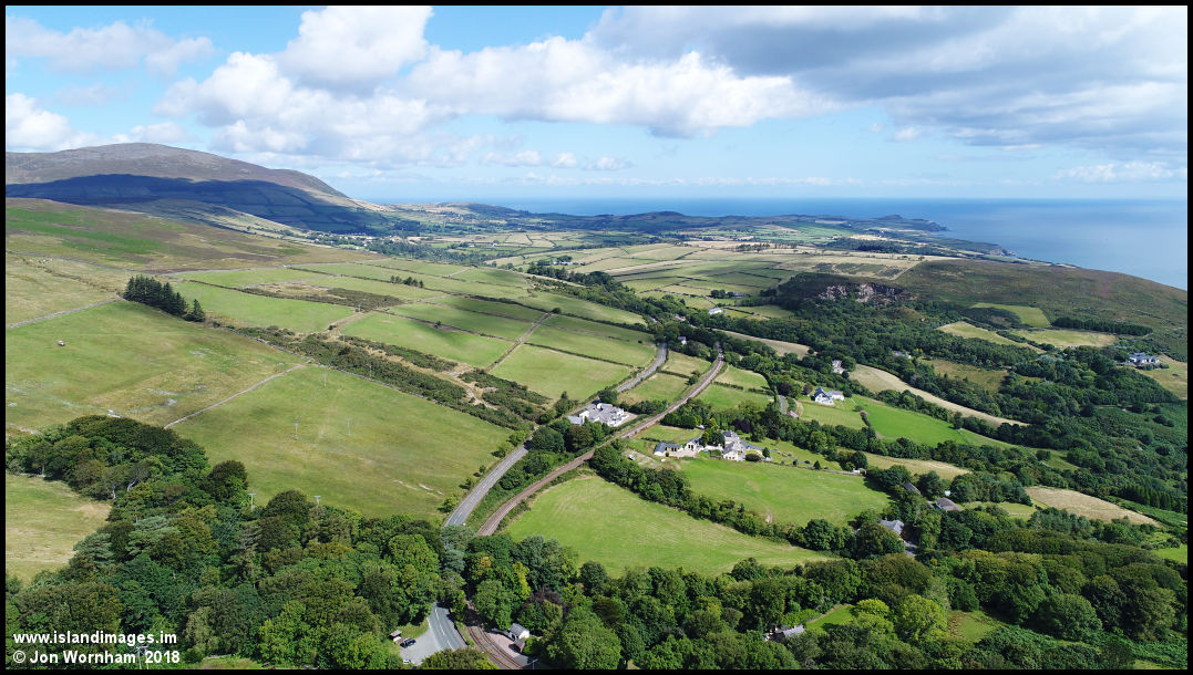 Road and railway continuing north towards Glen Mona and Ramsey.
