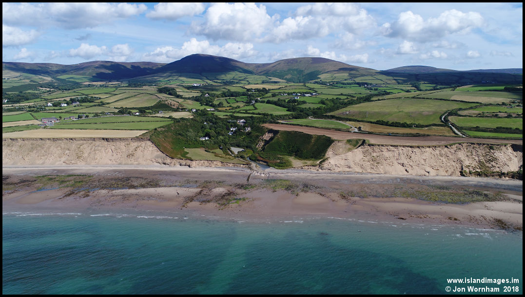 Moving out to sea a bit for a view of Glen Mooar and the beach at low tide.