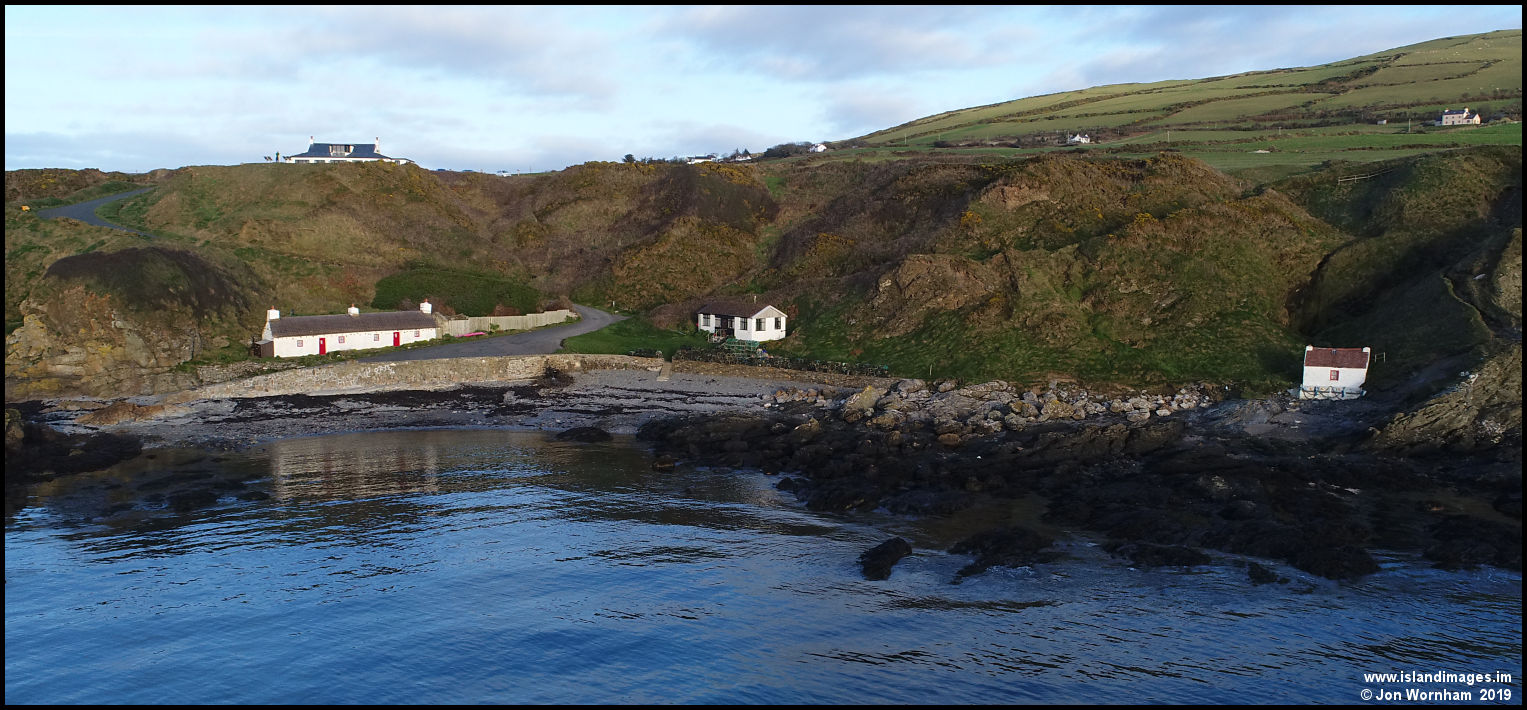Cottages at Niarbyl, from low over the sea