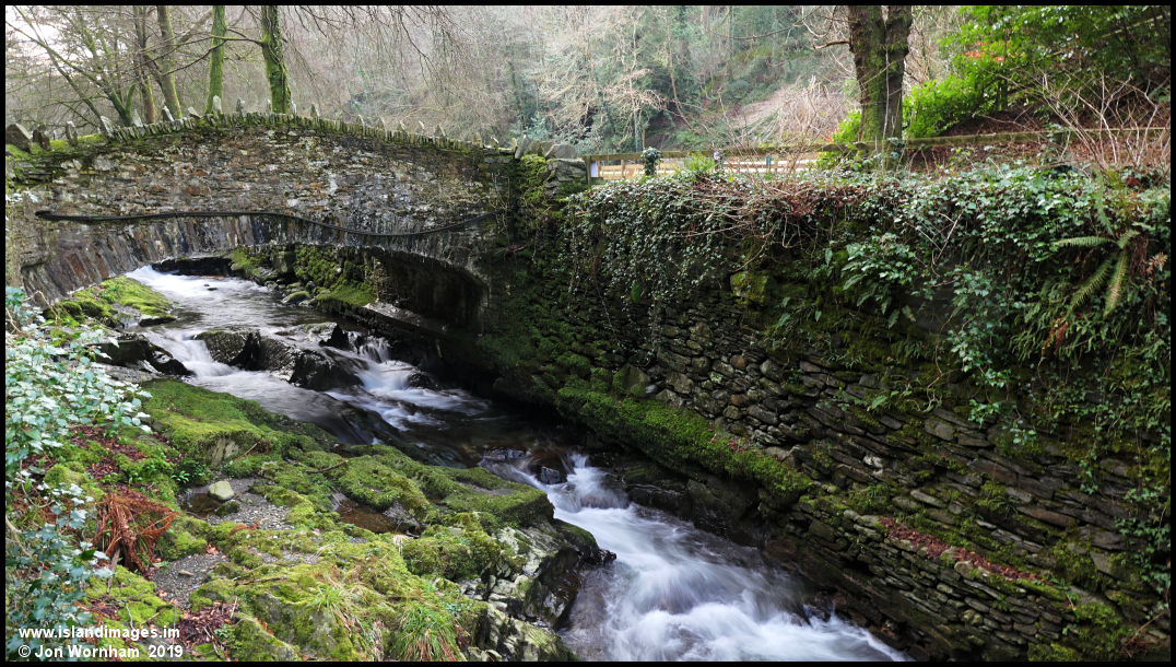 A stone bridge over the river in Laxey Glen Gardens.