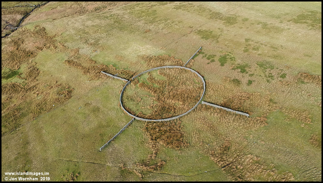 A more vertical view of the circular sheepfold and its four 'legs'.