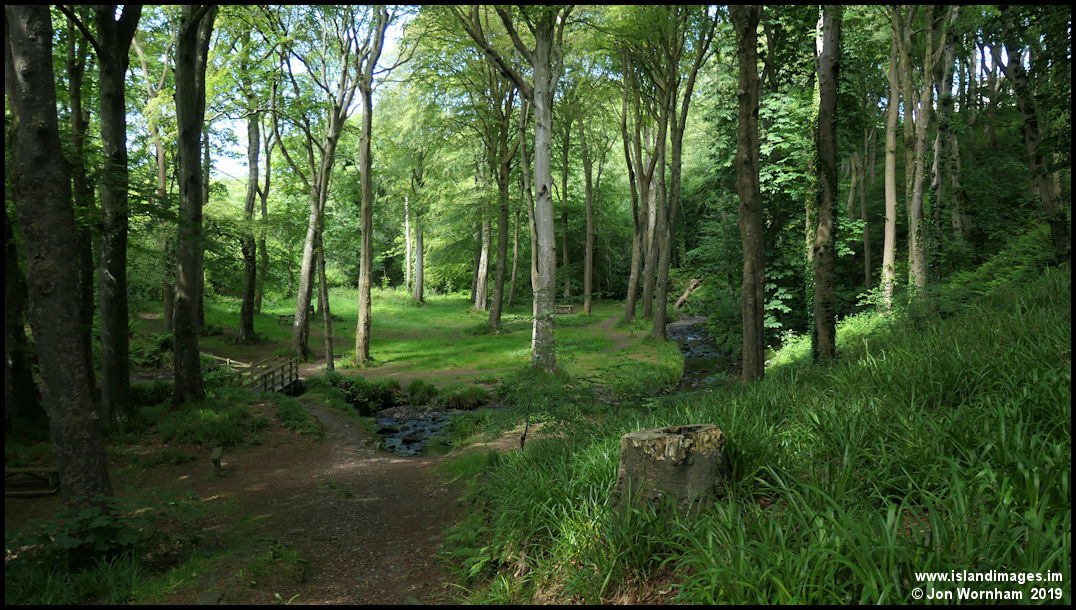 Walking up the pathway back to the road and looking down into the glen.