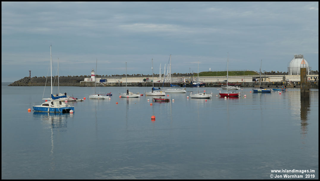 View across the pleasure boat section of the outer harbour as the yachts prepare for a race.