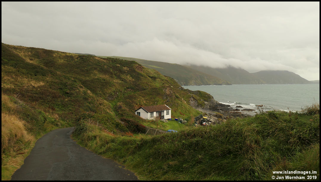 Walking back up the lane from the beach and taking in the view down to Bradda.