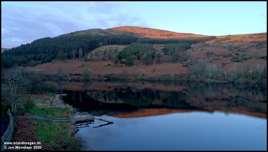When I arrived back at my car from the walk around Colden Plantation, I noticed that the surface of Injebreck Reservoir was completely still and reflective, so had a dusk flight there.