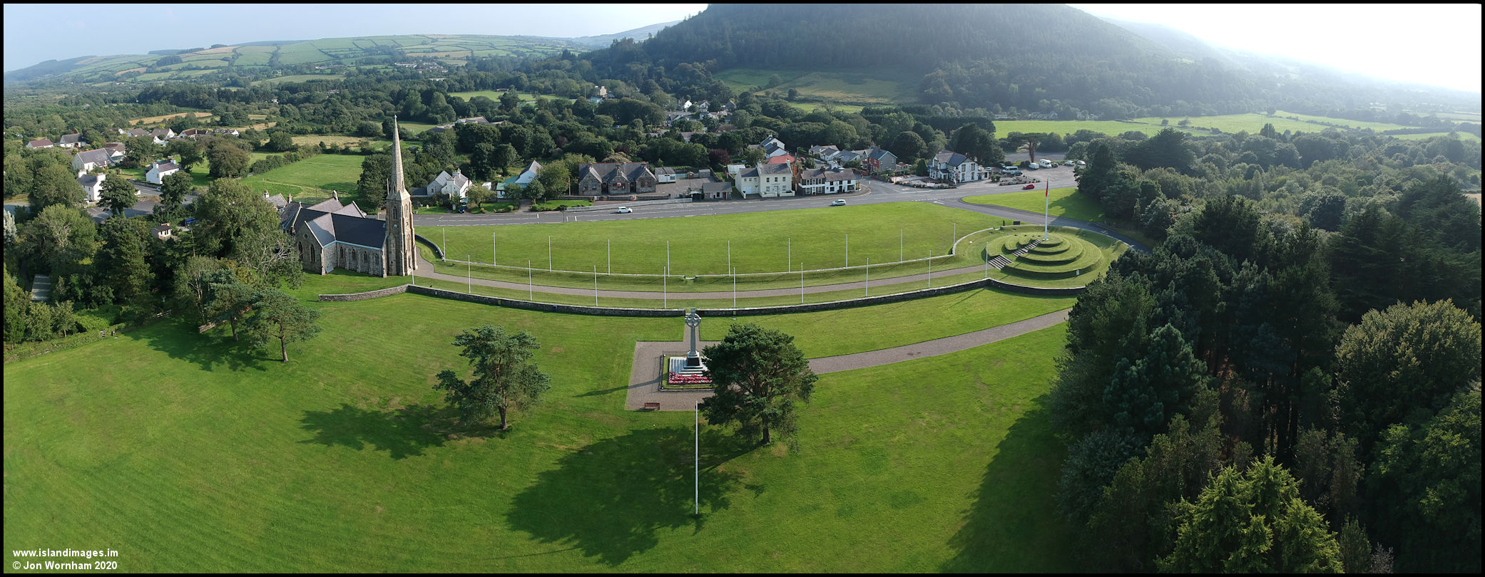 A shorter panorama just from St John's Church to Tynwald Hill.