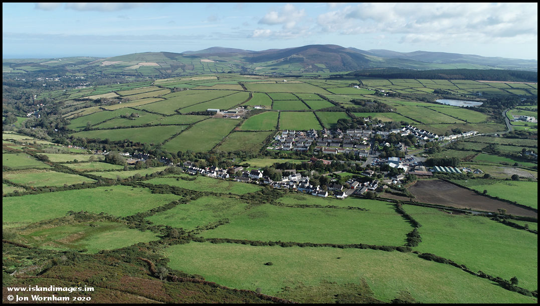 Looking north eat over the village of Foxdale, with Greeba in the distance.