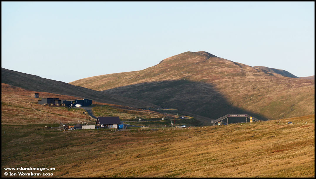 Using the zoom on the TZ200 for a closer view of the Bungalow area with Clagh Ouyr rising behind, the start of the ridge leading to North Barrule.
