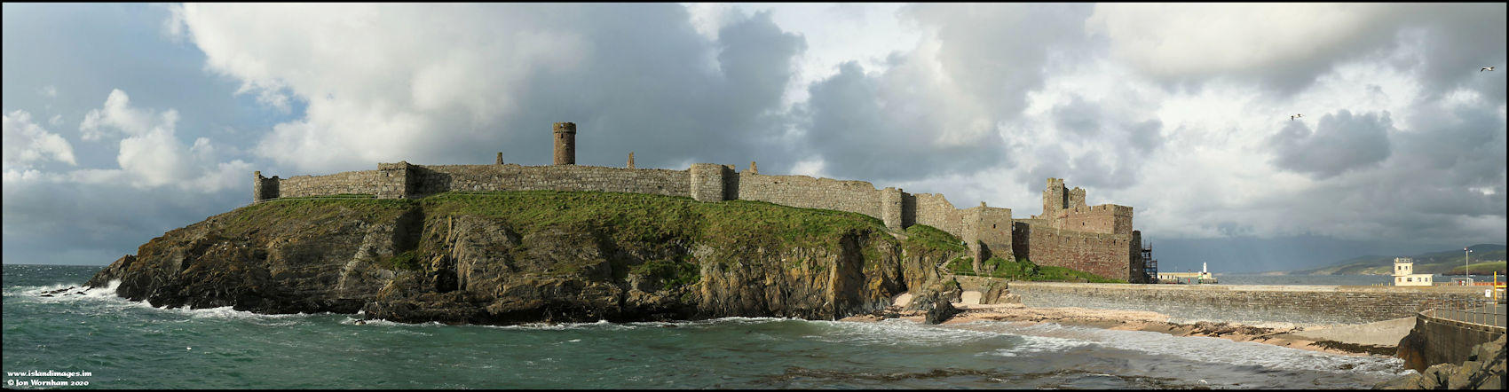 Peel Castle from the Fenella Beach car park, stitched from four original hand held shots.