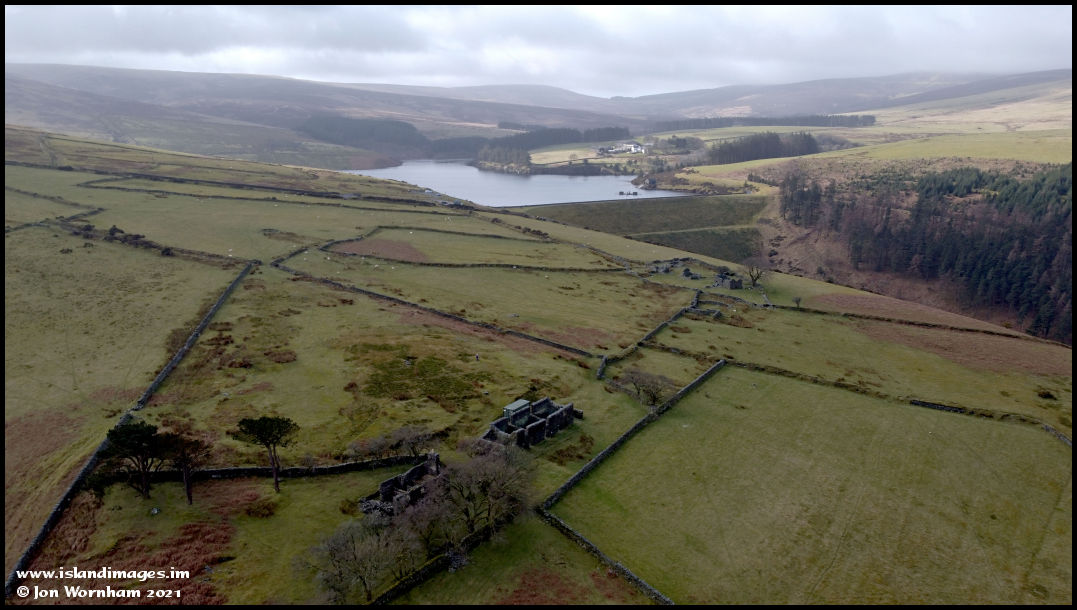 Looking past The Creggans to The Corrody and Sulby Reservoir. The cloud has rolled back over and it's time to pack the drone away and continue on my walk.