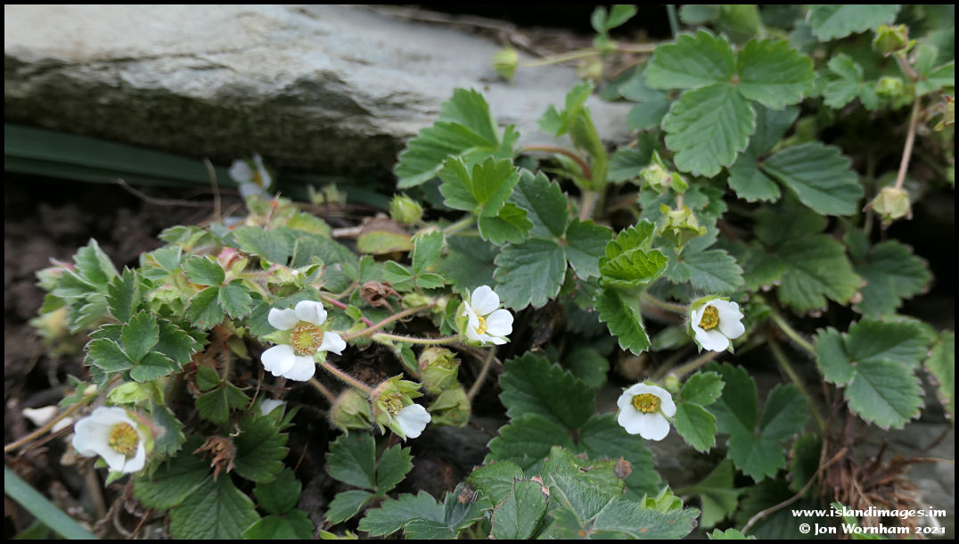 I'm not sure what these little white flowers are, growing out of a stone wall.