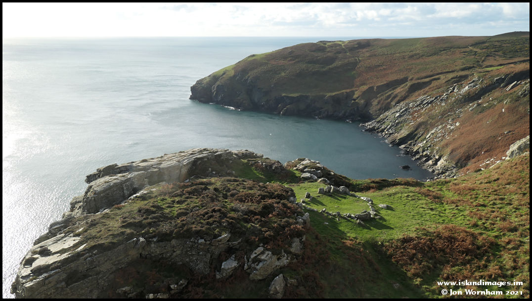 Looking over Cronk Carran and to Black Head. The stone circle is believed to be the remains of a small Celtic round house.