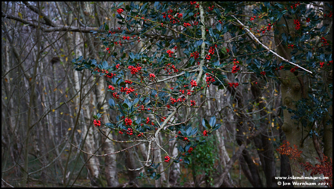 Holly berries. It's after sunset now and light levels are dropping rapidly.