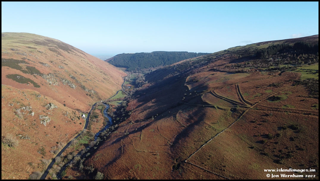 Looking across to the eastern side of the glen, where long abandoned green lanes were being picked out by the low sun angle.