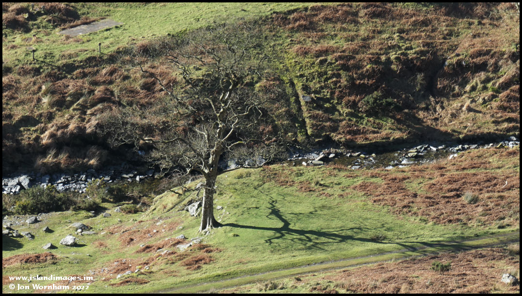 Just a tree and its shadow, down by the Sulby River.