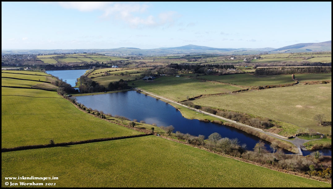 The two reservoirs, with The Clypse nearest. They were constructed in the 1800s to supply drinking water to Douglas.
