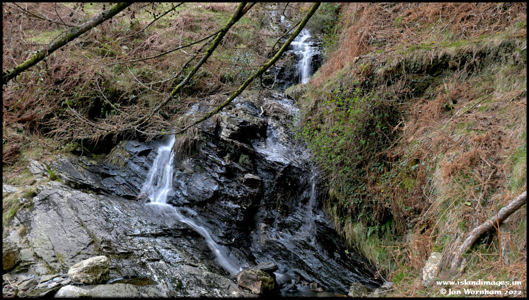 Just as the track leaves the woodland it crosses over this stream with a small waterfall.