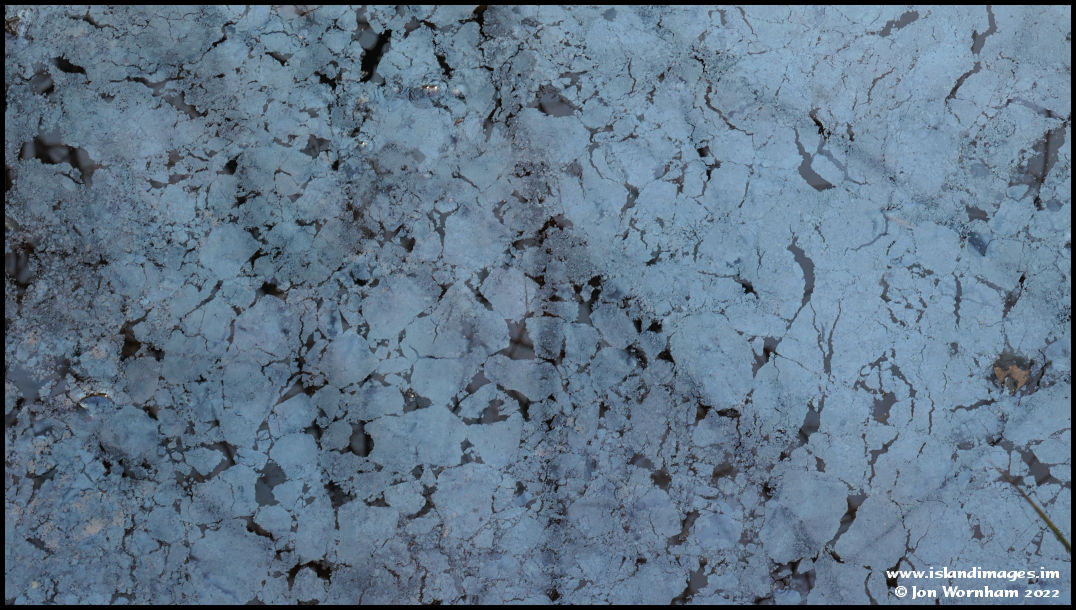Some oily looking substance leaching out of the soil or rotting vegetation was causing this pattern on the surface of a ditch.