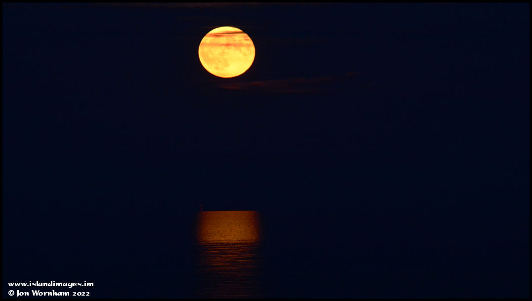 The 'Stawberry Full Moon' risies aboe the Irish Sea. Apparently so named as it is the full moon in the strawberry picking season in North America.