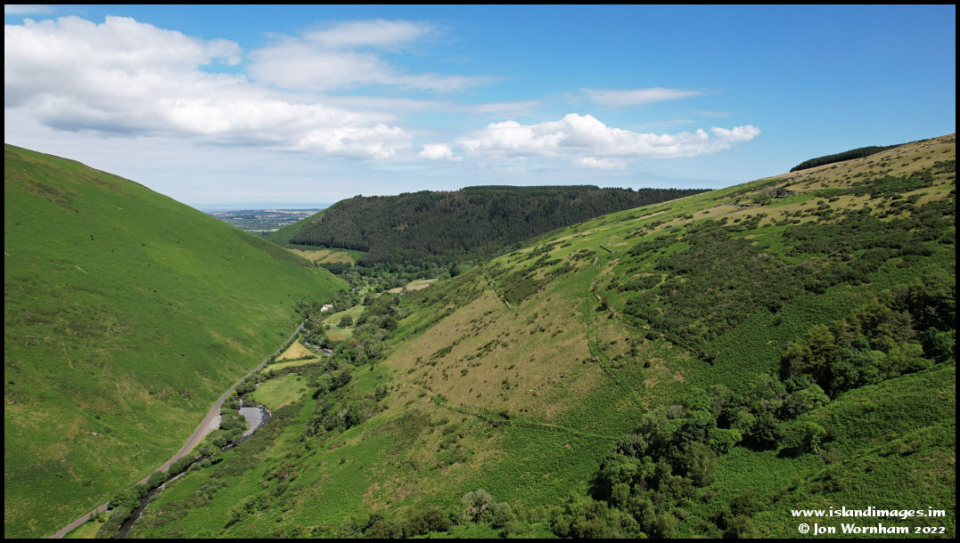Climbing up the eastern hillside, with an old green lane zig-zagging upwards, towards another tholtan high above the valley floor.