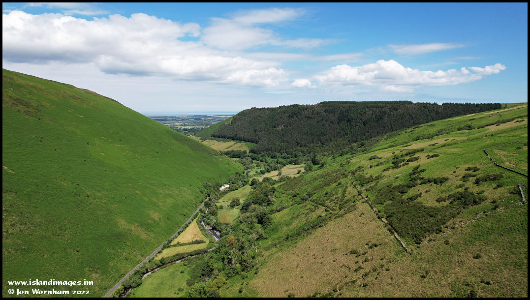 Final higher level view looking north, with another old green lane climbing up and the flatter lands to the north of the hills in the distance.
