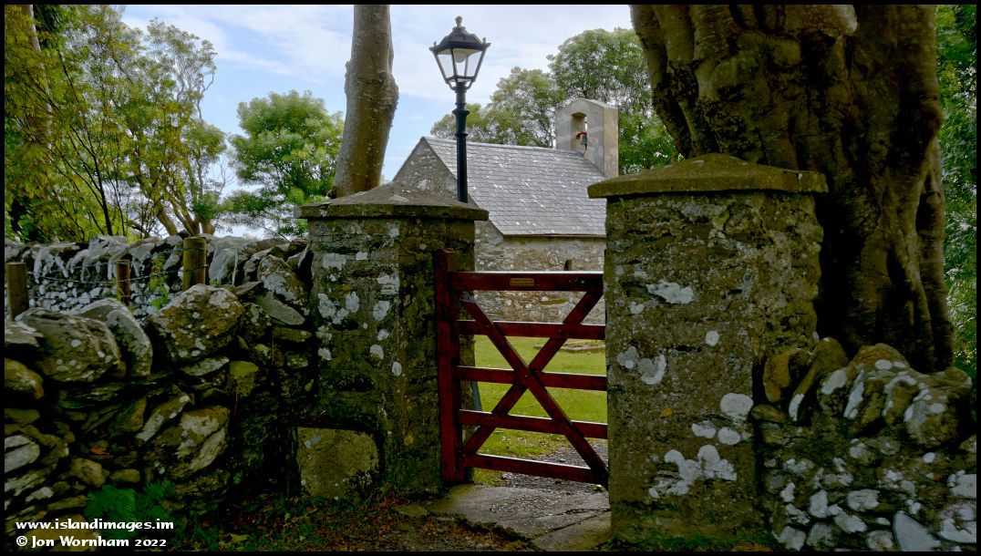The gateway into the churchyard od St Adamnan's Church, Lonan.