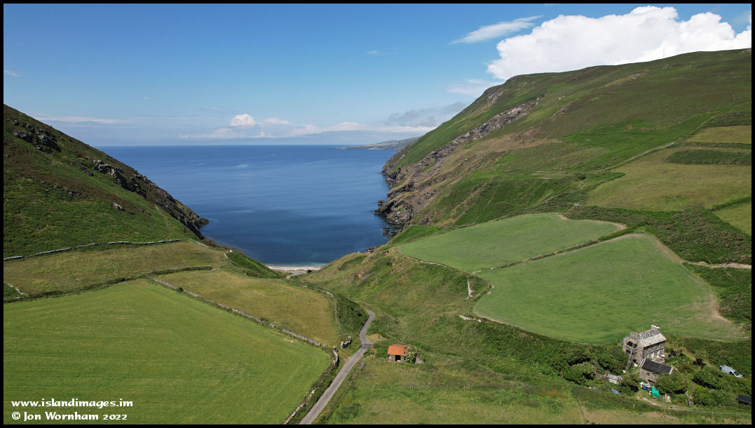 Flying inland a bit to set the scene. Fleshwick is reached by a fairly long single track road from the outskirts of Port Erin, not many pasing places and only space to park three, mayby four, cars when you reach the beach.