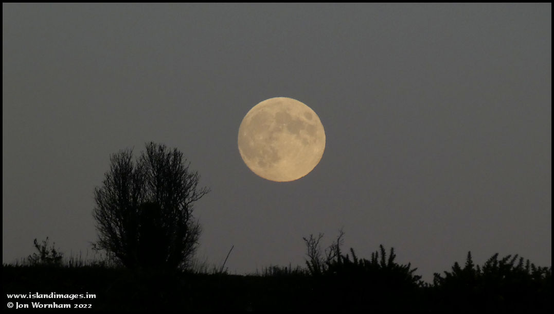 As I was walking along the road I became aware of a full moon rising over the fields and managed to find a gap in the hedge to get a photo.