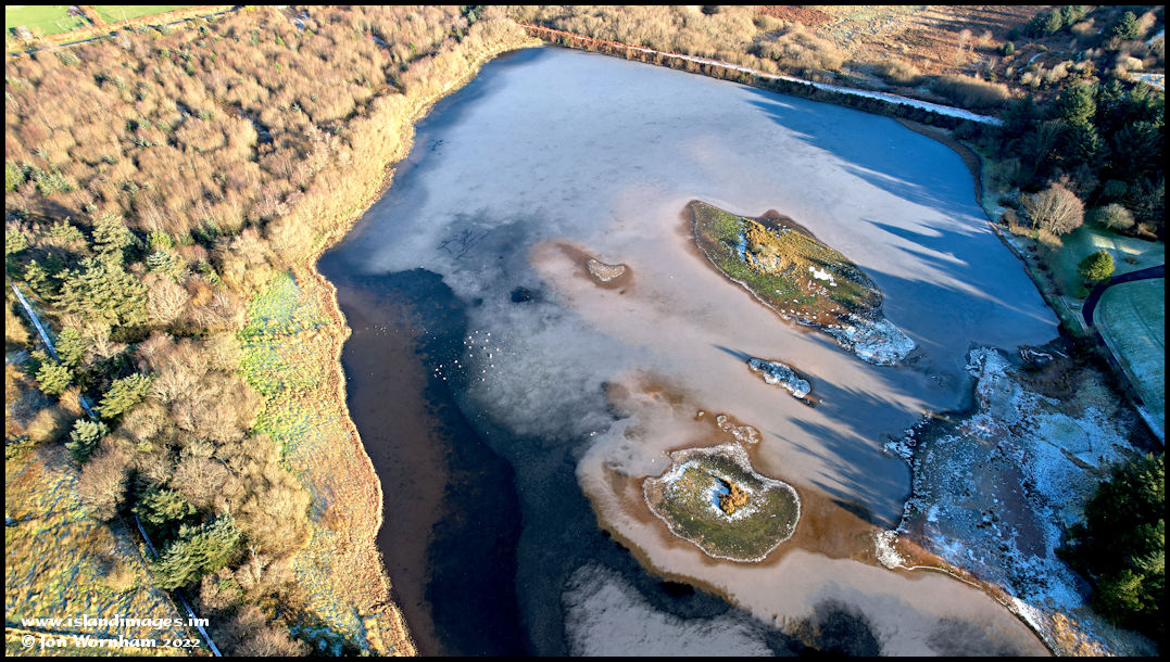 Islands that have formed in the reservoir. It appears to be silting up over time and unless cleared it will keep decreasing in size until it eventually with just become a marshland.