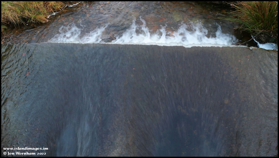 I've walked back to where my car is parked and this is where the stream used to run across the road with a ford. It's now (mostly) piped under the road and this is loking down on it, the colours are reflected from the sky.