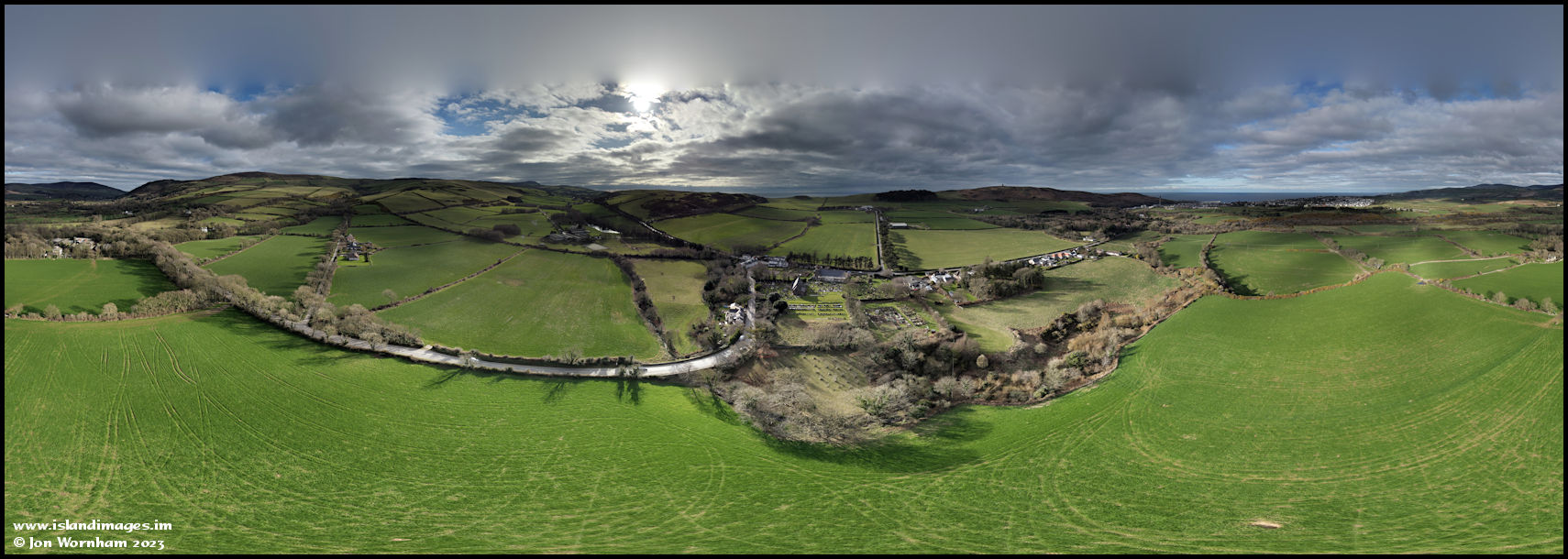 360 degree panorama looking west across Kirk Patrick to Knockaloe.