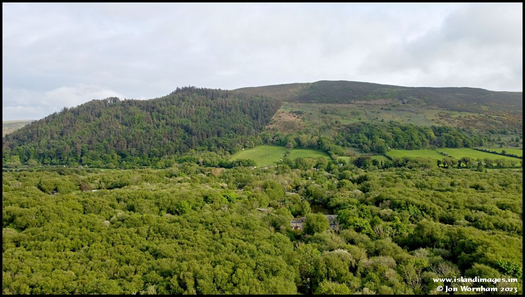 Looking south over the area of the curragh that is occuied by the Wildlife Park. The hill that rises beyond doesn't seem to have a name on any of my maps, but the plantation is Gob-y-Volley.