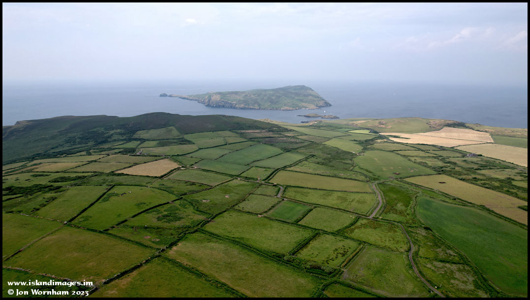 This is looking across the traditionally rather random shaped small fields of Cregneash, down to The Sound and Calf of Man.
