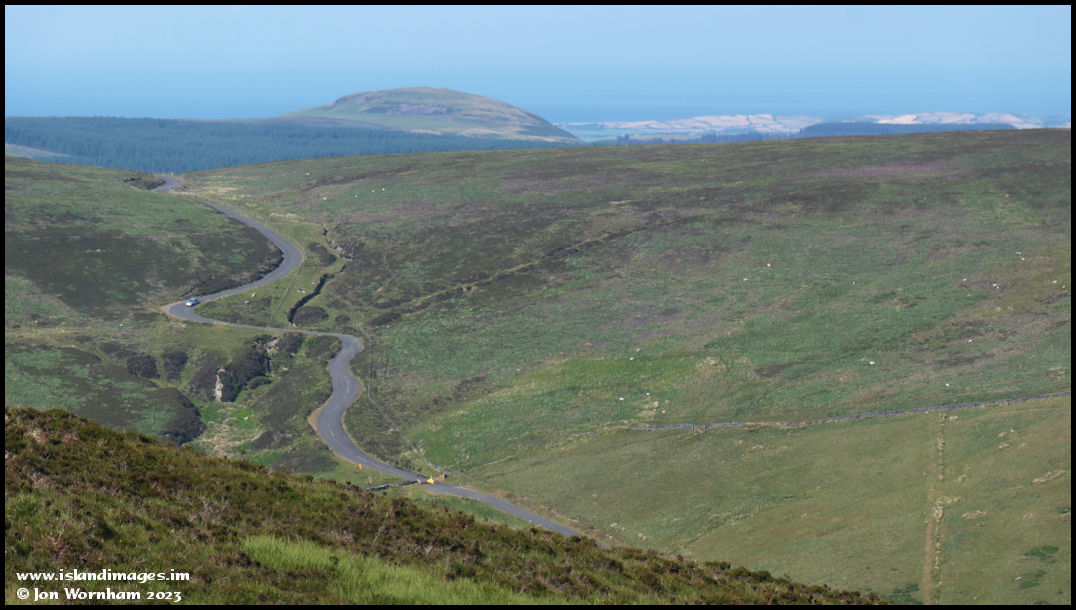 I'm on my way back down from Colden now, with the Injebreck Hill road snaking upwards and Mount Karrin in the distance. The island's northern plain is a bit lost in the haze.