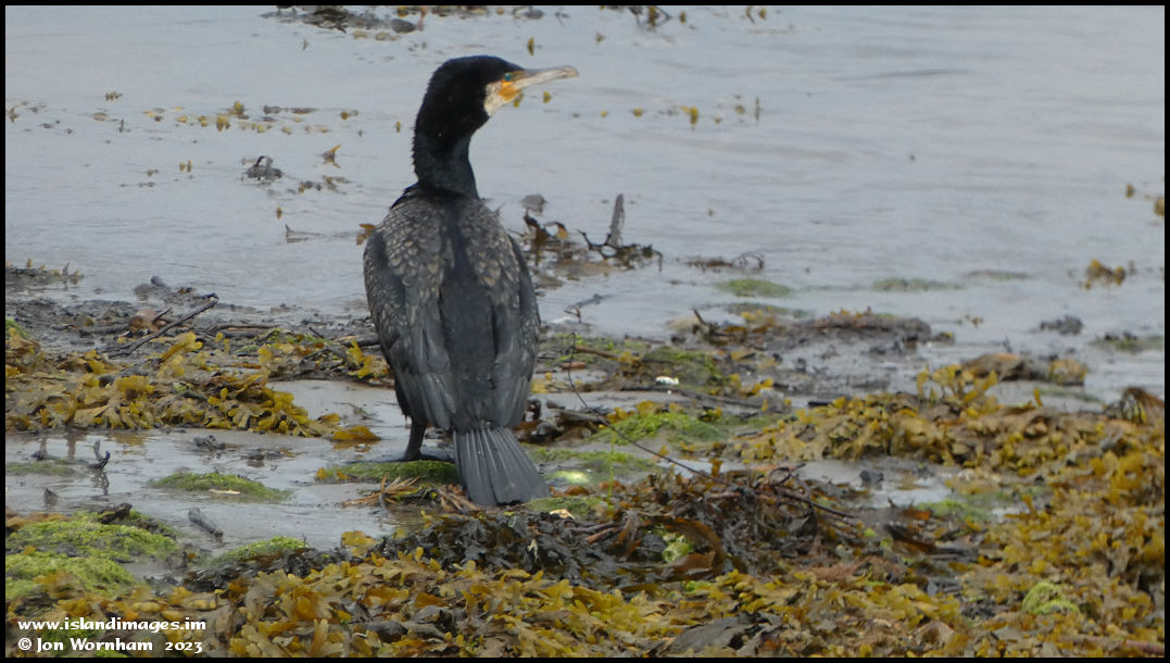 A Cormorant at the water's edge in the harbour. I just missed getting a picture of it with its wings outstretched.