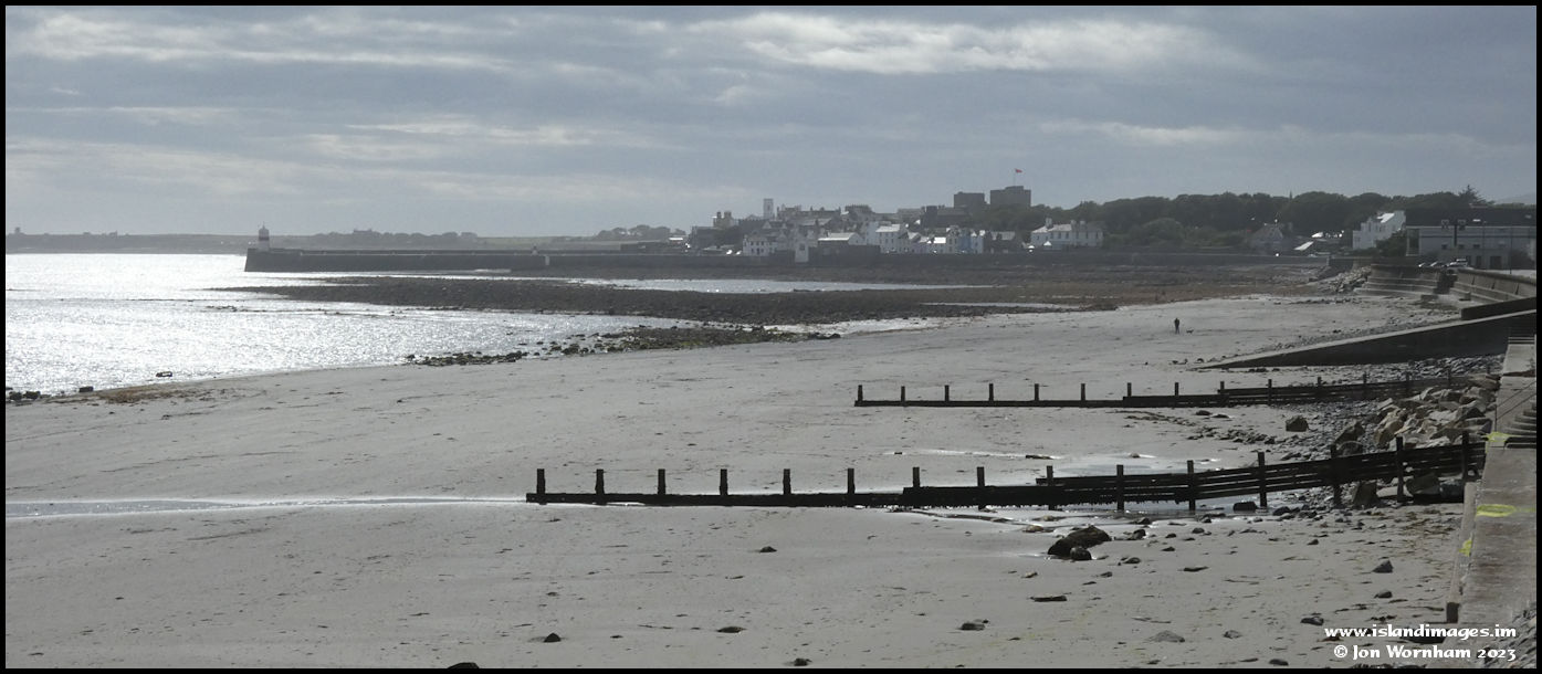 This is looking back along the beach towards the town at low tide, with the towers of Castle Rushen rising above the houses of Castletown.