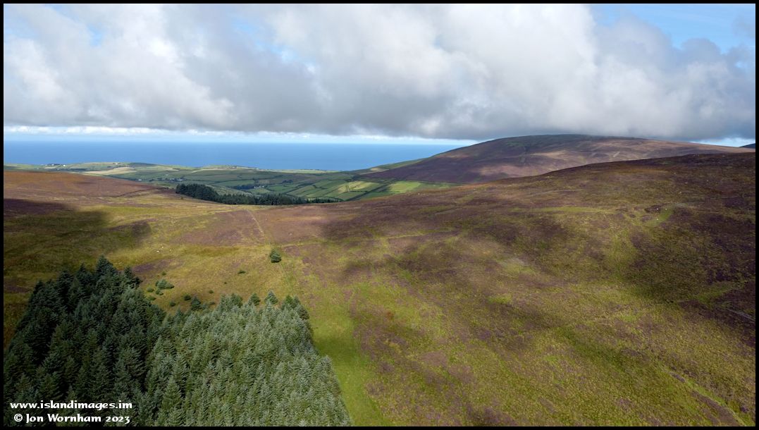 Taking a peek over the saddle between Colden on the lest and Slieau Maggle on the right. The upper Rhenass Vally lies beyond, with cloud sitting on the summit of Sartfell.