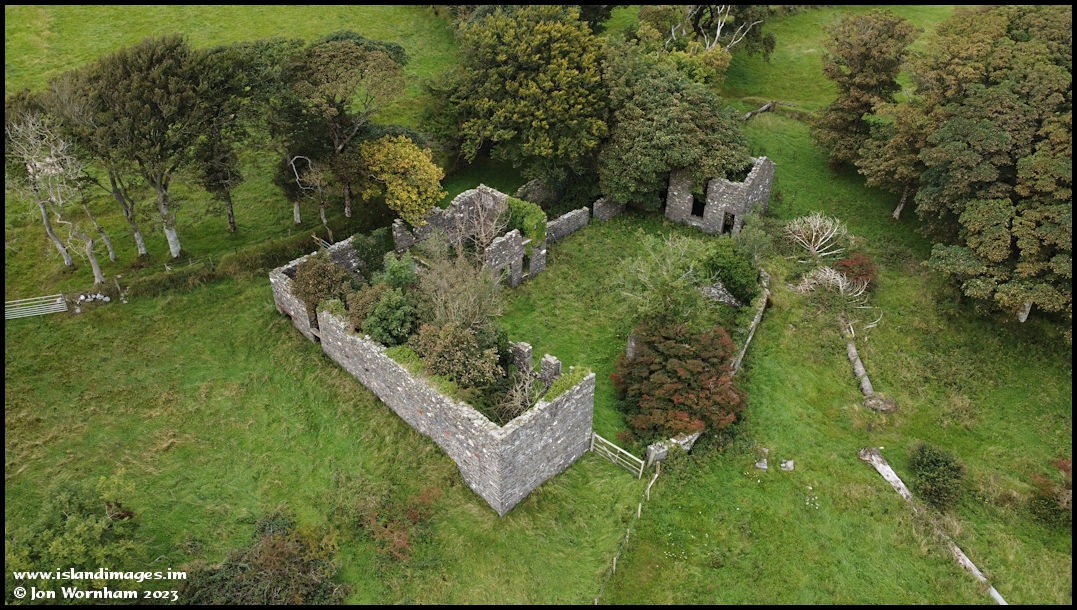 Climbing a bit higher and altering the angle to show the arrangement of the farm buildings, which formed three sides of an enclosed area, with a lower stone wall completing the enclosure.